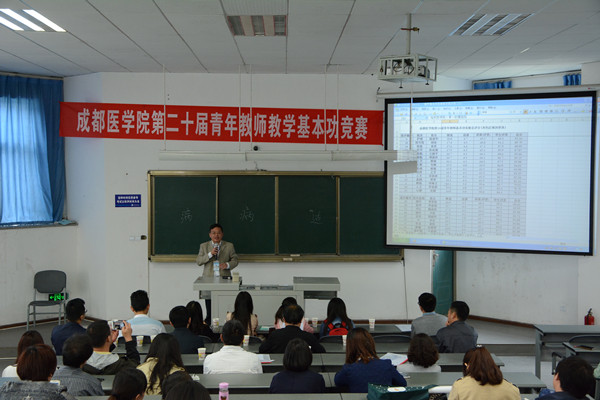 学校潘克俭副校长到场观摩比赛,并做了赛前讲话。比赛分为校本部组和校外教学基地医院组。竞赛由各院(系、部)和校外教学基地医院初赛,共选拔推荐了26名青年教师参加决赛。评委由9名校本部教学专家、3名校外教学基地医院专家和9名学生代表组成,校本部和校外教学基地医院教师观摩了比赛。
